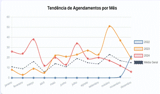 Figura 7 – Gráfico de incidência mensal de agendamentos. Fonte: Autores.