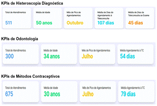 Figura 14 – Colagem dos KPIs de Histeroscopia Diagnóstica, Odontologia e Métodos Contraceptivos.