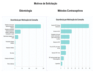 Figura 15 – Motivos de consulta Odontologia e Métodos Contraceptivos. Fonte: Autores.