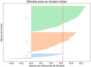 Gráfico 3 - Análise do Método da Silhueta para determinar o K-Means Antes do Estágio