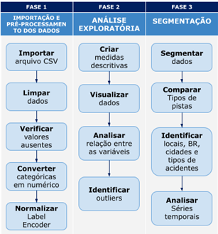 O estudo focou na análise dos dados de acidentes de trânsito das rodovias federais a partir de 2017, excluindo dados de crimes e infrações de trânsito. A área geográfica será restrita ao Estado de Pernambuco, excluindo vias estaduais e municipais.