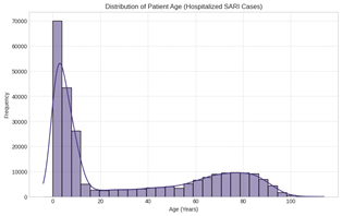A bimodal age distribution highlights high hospitalization rates in young children and older adults (Figure 3). The sex distribution is nearly balanced, with a slight male predominance.